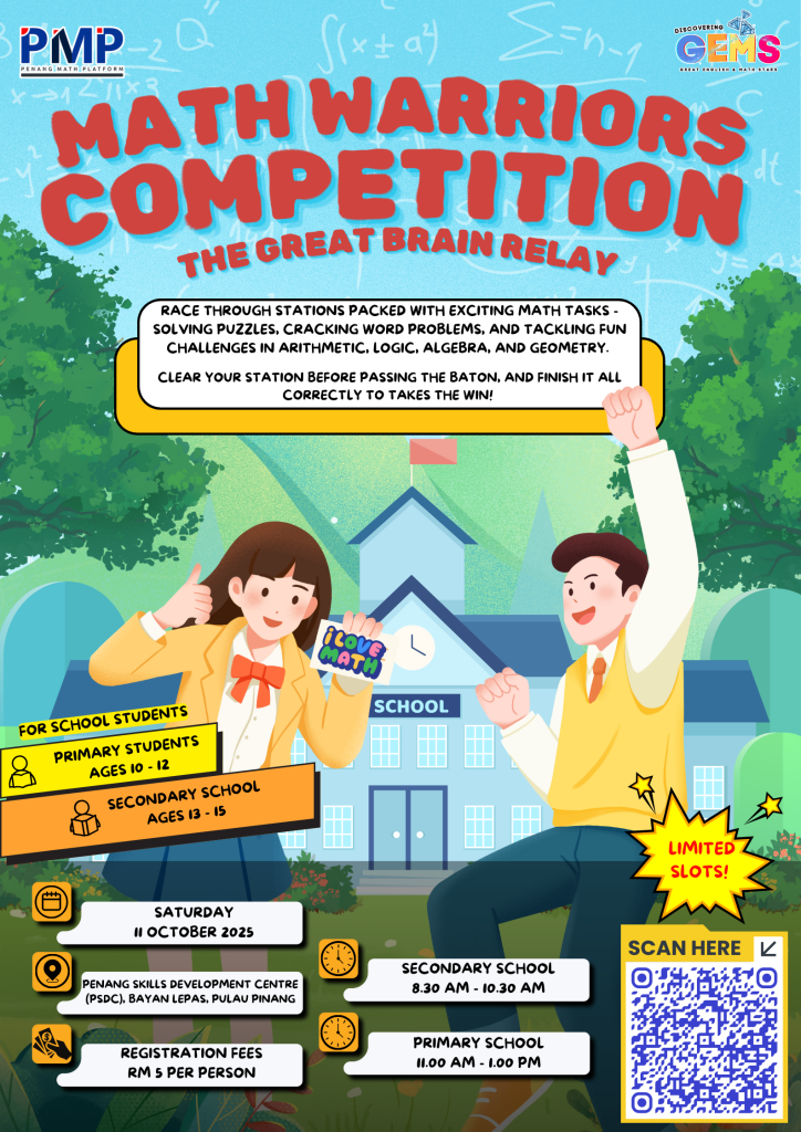 As the mathematics-focused arm of Penang STEM, PMP is committed to strengthening foundational and advanced math skills among students, equipping them with the critical thinking, creativity, and analytical abilities needed to thrive in an increasingly technology-driven world.